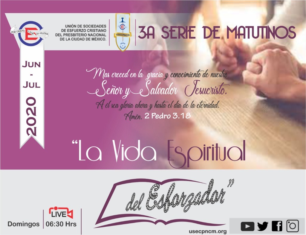 Tenemos la bendición de tener nuestra tercer serie de matutinos correspondiente al año convencional 2019-2020, los matutinos se estarán transmitiendo en vivo por Facebook Live desde la página de la Unión, aquí te dejamos el enlace donde podrás encontrar los videos de cada matutino.
