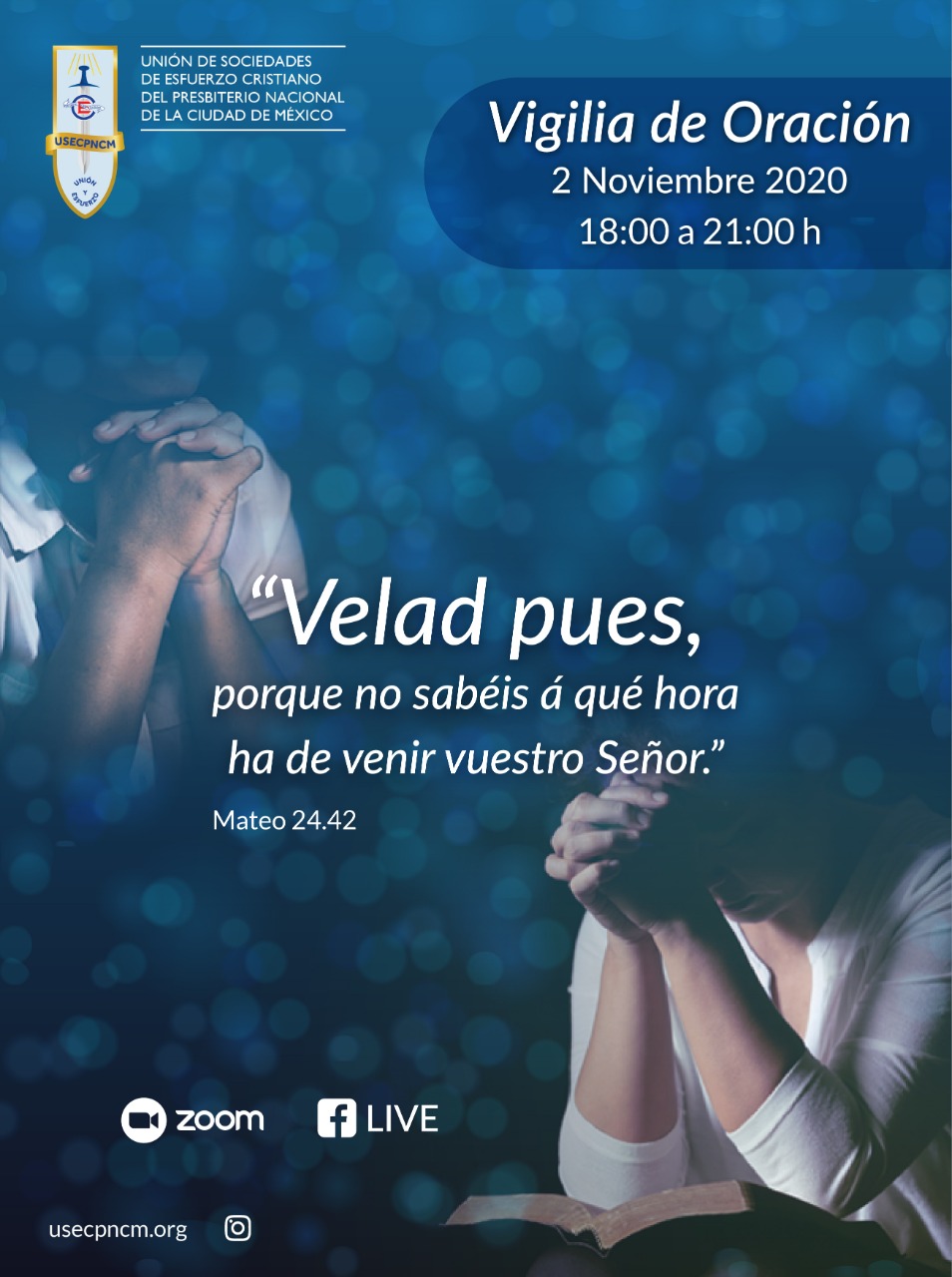 Este 2 de Noviembre de 2020, tenemos vigilia de Oración, podrás descargar el boletín de cada hora en los siguientes enlaces: